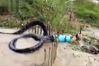 പാമ്പ് വളരെ വലുതാണെന്നാണ് വീഡിയോയിൽ തോന്നുന്നത്. ചെളി നിറഞ്ഞ തടാകത്തിലൂടെ വേഗത്തിൽ കുതിച്ചെത്തുന്ന പാമ്പിന്റെ തല നീല നിറത്തിലുള്ള ഒരു ഡ്രമ്മിനുള്ളിൽ കുടുങ്ങുകയാണ്. രണ്ടു വർഷം മുമ്പ് ആദ്യമായി ട്വിറ്ററിൽ പങ്കു വയ്ക്കപ്പെട്ട ഈ വീഡിയോ ഒരു ദശലക്ഷത്തിലധികം തവണ കണ്ടിരുന്നു.