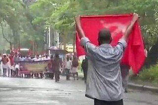ബിജെപി മാർച്ചിന് മുന്നിൽ ഇരുകൈകളുംകൊണ്ട് കൊടി ഉയർത്തി, വലതു കൈ മുഷ്ടി അന്തരീക്ഷത്തിലേക്ക് ഉയർത്തി മുദ്രാവാക്യം വിളിക്കുകയാണ് സിപിഎം പ്രവർത്തകൻ. ഈ വീഡിയോ ഇതിനോടകം സോഷ്യൽമീഡിയയിൽ വൈറലായി കഴിഞ്ഞു.
