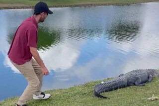ഫ്ലോറിഡ സ്വദേശിയായ കൈല് ഡൗണസ് എന്നയാളാണ് സഹോദരനുമൊപ്പം ഗോൾഫ് കളിക്കാൻ പോയപ്പോഴുണ്ടായ സംഭവം വീഡിയോയിൽ പകർത്തി സോഷ്യൽ മീഡിയയിൽ പങ്കുവച്ചത്. യുപിഐ ന്യൂസ് വെബ്സൈറ്റിലെ റിപ്പോര്ട്ട് അനുസരിച്ച് ഫ്ലോറിഡ കോറല് ഓക്സ് ഗോൾഫ് കോഴ്സിലാണ് സഹോദരന്മാർ ഗോൾഫ് കളിക്കാനെത്തിയത്. കളിക്കിടെ പന്തു ചെന്ന് വീണത് അവിടെ തടാകക്കരയിൽ വിശ്രമിക്കുകയായിരുന്ന കൂറ്റൻ ചീങ്കണ്ണിയുടെ വാലിലും.