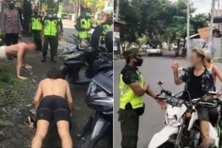 ഇന്തോനേഷ്യയിലെ ബാലിയിൽ നിന്നുള്ള വീഡിയോ ദൃശ്യങ്ങളാണ് വ്യാപകമായി പ്രചരിക്കുന്നത്. കടുത്ത ചൂടിൽ പൊതുനിരത്തിൽ പുഷ് അപ്പ് ചെയ്യുന്ന ആളുകളാണ് ദൃശ്യങ്ങളിൽ. ഇവർക്ക് ചുറ്റും പൊലീസുകാരുടെ ഒരു പട തന്നെയുണ്ട്. കോവിഡ് വ്യാപനം രൂക്ഷമായ സാഹചര്യത്തിലാണ് ബാലിയിൽ അധികൃതർ പൊതുസ്ഥലത്ത് മാസ്ക് നിർബന്ധമാക്കിയത്. എന്നാൽ പലപ്പോഴും ടൂറിസ്റ്റുകൾ ഈ നിർദേശം പാലിക്കാറില്ലെന്നാണ് അധികൃതർ പറയുന്നത്.
