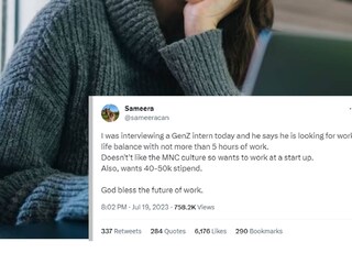 ഇന്റേണ്ഷിപ്പിനായി ഒരു ഉദ്യോഗാര്ത്ഥിയെ അഭിമുഖം നടത്തിയപ്പോള് ഉണ്ടായ അനുഭവം ഒരു ഉപയോക്താവ് ട്വിറ്ററില് പങ്കുവെച്ചതോടെയാണ് സംഭവം സോഷ്യല് മീഡിയയില് ചര്ച്ചയായത്. ‘ഞാന് ഇന്ന് GenZ വിഭാഗത്തിൽ (1990-കളുടെ അവസാനത്തിനും 2010-കളുടെ തുടക്കത്തിനും ഇടയിൽ ജനിച്ചവർ) ഒരു ഇന്റേണിനെ ഇന്റര്വ്യൂ ചെയ്യുകയായിരുന്നു, വര്ക്ക്-ലൈഫ് ബാലന്സ് വേണമെന്നതിനാൽ 5 മണിക്കൂറില് കൂടുതല് ജോലി ചെയ്യാന് ഈ യുവാവ് തയാറല്ല. കൂടാതെ, 40000നും 50,000നും ഇടയിൽ സ്റ്റൈപെൻഡായും വേണം. ഭാവിയില് അദ്ദേഹത്തിന് നല്ല ജോലി ലഭിക്കട്ടെ’ എന്നാണ് സമീര എന്ന ഉപഭോക്താവ് ട്വിറ്ററില് പങ്കുവെച്ചത്.