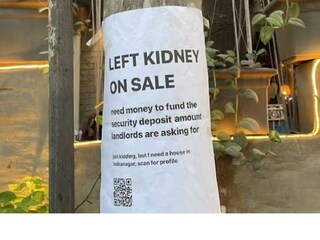‘ഇടതു വശത്തെ വൃക്ക വിൽപനക്ക്. വീട്ടുടമകൾ ആവശ്യപ്പെടുന്ന സെക്യൂരിറ്റി ഡെപ്പോസിറ്റ് നൽകാൻ പണം വേണം’, എന്നാണ് പോസ്റ്ററിൽ കുറിച്ചിരുന്നത്. താൻ ബംഗളൂരുവിലെ ഇന്ദിരാനഗറിൽ വാടകയ്ക്ക് വീട് തേടുകയാണെന്നും ഇത് വെറുമൊരു തമാശ മാത്രമാണെന്നും പോസ്റ്ററിനു താഴെ എഴുതിയിട്ടുണ്ട്. തന്റെ പ്രൊഫൈൽ ആക്സസ് ചെയ്യാനുള്ള ക്യുആർ കോഡും ഒപ്പം ചേർത്തിരുന്നു.