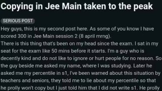താൻ തന്റെ മാതാപിതാക്കളോടും, സുഹൃത്തുക്കളോടും, അധ്യാപകരോടും ഈ വിഷയം സംസാരിച്ചിരുന്നുവെന്നും മറ്റൊരാൾ ഉത്തരങ്ങൾ കോപ്പി അടിച്ചത് ഒരിക്കലും തന്റെ തെറ്റല്ലെന്ന് അവർ പറഞ്ഞതായും പരാതിക്കാരനായ വിദ്യാർത്ഥി പറയുന്നു. കൂടാതെ കോപ്പിയടിക്കെതിരെ നടപടി സ്വീകരിക്കുന്നതിനായി എല്ലാവരും അധികൃതർക്ക് സന്ദേശങ്ങൾ അയക്കണമെന്നും പോസ്റ്റിൽ വിദ്യാർത്ഥി ആവശ്യപ്പെടുന്നു. അതേസമയം ഉത്തരം കോപ്പി അടിച്ച വിദ്യാർത്ഥിയുടെ പേരോ മറ്റ് വിവരങ്ങളോ പോസ്റ്റിൽ ഉൾപ്പെടുത്തിയിട്ടില്ല. അതുകൊണ്ട് തന്നെ പലരും പോസ്റ്റിന്റെ യാഥാർഥ്യത്തെ ചോദ്യം ചെയ്യുന്നുണ്ട്.