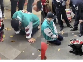 പ്രണയം തിരികെ നേടാനായി ഇങ്ങനെ മുട്ടുകുത്തി നിൽക്കേണ്ടന്ന് പലരും പരഞ്ഞെങ്കിലും യുവാവ് അത് ചെവിക്കൊണ്ടില്ല. ഇത് കണ്ട ചിലർ പൊലീസിനെ വിളിച്ചുവരുത്തി. ഒടുവിൽ കാമുകനെ ബലപ്രയോഗത്തിൽ അവിടെ നിന്നും നീക്കാനായി പോലീസിന്റെ ശ്രമം. ഇവിടെ മുട്ടുകുത്തി നിൽക്കുന്നത് നിയമവിരുദ്ധം അല്ലെങ്കിൽ തന്നെ അതിന് അനുവദിക്കണമെന്ന് ഇയാൾ ആവശ്യപ്പെട്ടതോടെ പൊലീസും പിന്മാറി.