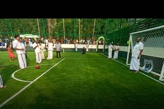 ഉദ്ഘാടന ചടങ്ങിൽ സ്ഥലം എംഎൽഎ മാണി സി കാപ്പനും ജോസ് കെ മാണിയും ഒരുമിച്ചെത്തി. ഇതോടെ രണ്ടുപേരും തമ്മിൽ ഏറ്റുമുട്ടിയാൽ ആര് ജയിക്കും എന്ന് കൗതുകം സംഘാടകർക്കും ഉണ്ടായി. ഒടുവിൽ ഇരുവരോടും സംഘാടകർ സംസാരിച്ചു. ഒരു ചെറിയ മത്സരം നടത്താനും ഒടുവിൽ തീരുമാനമായി. ജോസ് കെ മാണി കിക്ക് എടുക്കും. മാണി സി കാപ്പൻ ഗോളി ആകും. സംഘാടകരുടെ നിർദ്ദേശം ഇരുനേതാക്കളും അംഗീകരിച്ചു. ഒടുവിൽ നടന്ന മത്സരമാണ് ഇപ്പോൾ വീഡിയോയിലൂടെ വൈറലായിരിക്കുന്നത്. നേരത്തെ തീരുമാനിച്ചതുപോലെ ജോസ് കെ മാണി കിക്കെടുത്തു. പക്ഷേ മാണി സി കാപ്പൻ തടുത്തു. അങ്ങനെ ഭാവിയിലെ എതിരാളിയുടെ ഗോൾ തടുത്ത ആവേശത്തിൽ മാണി സി കാപ്പൻ.