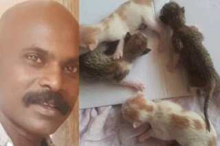 പൂച്ച കുഞ്ഞുങ്ങളെ ഹരിദാസ് വീട്ടിലേക്ക് കൊണ്ടുവന്നു. അര മണിക്കൂർ ഇടവിട്ട് ലാക്ടോജൻ കലക്കി സിറിഞ്ചിൽ നിറച്ച് നൽകുന്നുണ്ട്. സ്പോഞ്ച് നിറച്ച കാർഡ് ബോർഡ് പെട്ടിയിലാണ് പൂച്ചക്കുഞ്ഞുങ്ങൾക്ക് കൂടൊരുക്കിയിരിക്കുന്നത്. ഇരുപത് വർഷത്തോളമായി പാമ്പ് പിടുത്തത്തിൽ സജീവമായി രംഗത്തുള്ളയാളാണ് ഹരിദാസ്.