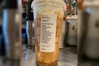ഒരു പരമ്പരാഗത കാരാമൽ റിബൺ ക്രഞ്ച് ഫ്രാപ്പുച്ചിനോ കോഫി, പാൽ, ഐസ്, കാരാമൽ സിറപ്പ് എന്നിവ ഉപയോഗിച്ചാണ് ഉണ്ടാക്കുന്നത്. ഇത് ഡാർക്ക് കാരാമൽ സോസ്, വിപ്പ്ഡ് ക്രീം, കാരാമൽ ഡ്രിസിൽ, ക്രഞ്ചി കാരാമൽ - ഷുഗർ എന്നിവ ഉപയോഗിച്ച് ടോപ്പിംഗ് ചെയ്യുന്നു. എന്നാൽ, എഡ്വേർഡ് എന്ന ഉപഭോക്താവ്, അഞ്ച് ഏത്തപ്പഴം, എക്സ്ട്രാ കാരാമൽ ഡ്രിസിൽ, എക്സ്ട്രാ വിപ്പ്ഡ് ക്രീം, എക്സ്ട്രാ ഐസ്, എക്സ്ട്രാ സിന്നമൺ ടോൾസ് ടോപ്പിംഗ്, ഏഴ് പമ്പ് അധികം ഡാർക്ക് കാരാമൽ സോസ്, എക്സ്ട്രാ കാരാമൽ ക്രഞ്ച്, ഒരു പമ്പ് തേൻ മിശ്രിതം, എക്സ്ട്രാ സാൾട്ട് ബ്രൗൺ ബട്ടർ, അഞ്ച് പമ്പ് ഫ്രാപ്പുച്ചിനോ റോസ്റ്റ് കോഫി, ഫ്രാപ്പുച്ചിനോ ചിപ്സുകളുടെ ഏഴ് അധിക സെർവിംഗ് ഹെവി ക്രീം, ഡബിൾ ബ്ലെൻഡ് എന്നിവ അടങ്ങുന്ന നീണ്ട ഒരു ഓർഡർ ആണ് നൽകിയത്.