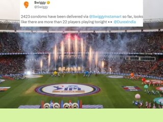 ഐപിഎൽ സീസണിലുടനീളം നാം കണ്ടതുപോലെ, പ്രശസ്ത ഫുഡ് ഡെലിവറി പ്ലാറ്റ്ഫോമായ സ്വിഗ്ഗി ഈ ഇടവേളയും രസകരമാക്കി. ഐപിഎൽ 2023 ഫൈനൽ നടന്ന തിങ്കളാഴ്ച രാത്രി സ്വിഗ്ഗി ട്വിറ്ററിൽ കുറിച്ചത്, അവരുടെ ഇൻസ്റ്റന്റ് ഡെലിവറി ആപ്പായ ഇൻസ്റ്റാമാർട്ടുമായി ബന്ധപ്പെട്ട തികച്ചും അസാധാരണവും രസകരവുമായ സ്ഥിതിവിവരക്കണക്കുകളാണ്. “ഇതുവരെ @SwiggyInstamart വഴി 2423 കോണ്ടം പാക്കറ്റുകൾ ഡെലിവർ ചെയ്തിട്ടുണ്ട്, ഇന്ന് രാത്രി 22ലധികം പ്ലേയേഴ്സ് ഉണ്ട് [sic] @DurexIndia.”- ട്വീറ്റിൽ പറയുന്നു.