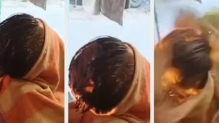 ഇന്നലെയായിരുന്നു സംഭവം. മുടി വെട്ടിയതിനു ശേഷം മുഖത്ത് ടൗവൽ വെച്ച് മറച്ച് തലയിൽ മുടിയിൽ തീ കൊടുത്ത് സെറ്റ് ചെയ്യുന്നതാണ് രീതി. എന്നാൽ, തീപെട്ടി ഉപയോഗിച്ച് മുടി കത്തിച്ച ശേഷം ബാർബർ ഉദ്ദേശിച്ച രീതിയിൽ തീ നിയന്ത്രിക്കാനായില്ല. മുടിയിൽ നിന്നും തലയിലേക്കും മുഖത്തും തീപടർന്നതോടെ യുവാവ് ഇറങ്ങി ഓടുന്നതും വീഡിയോയിൽ കാണാം.