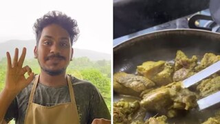 പിന്നീട് ചൂടാക്കിയ ഒരു പാനിലേക്ക് ചിക്കനിട്ട് ഫ്രൈ ചെയ്തെടുക്കുന്നു. ചിക്കന് ഫ്രൈ ചെയ്യുന്ന പാനിലേക്ക് അല്പ്പം വെള്ളം സ്പ്രേ ചെയ്തും കൊടുക്കുന്നുണ്ട്. ഇനിയാണ് കഥയിലെ ട്വിസ്റ്റ്. ഫ്രൈ ചെയ്തുകൊണ്ടിരിക്കുന്ന പാനിലേക്ക് നീരജ് അല്പ്പം ഓള്ഡ് മങ്ക് റം കൂടി ഒഴിച്ചുകൊടുക്കുകയാണ്. പിന്നീട് ചിക്കന് നന്നായി വേവിച്ച ശേഷം അദ്ദേഹം ടേസ്റ്റ് ചെയ്യുന്നതും വീഡിയോയില് കാണാം. ഓള്ഡ് മങ്ക് ചിക്കന് റെസിപ്പി എന്ന പേരിലാണ് ഈ വീഡിയോ സോഷ്യല് മീഡിയയില് പോസ്റ്റ് ചെയ്തത്.