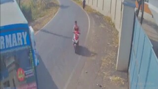 ഒരു ബസ് തിരിക്കുമ്പോള് അമിത വേഗത്തില് വളവ് തിരിഞ്ഞ് എത്തുന്ന സ്കൂട്ടി അതിന്റെ ഇടയില് ലഭിക്കുന്ന ചെറിയ ഇടത്തിലൂടെ ചീറിപ്പാഞ്ഞ് പോകുന്നത് കാണാം. ബസ് പെട്ടെന്ന് ബ്രേക്ക് ഇടുന്നതും വീഡിയോയില് ദൃശ്യമാണ്.നിയന്ത്രണം വിട്ട സ്കൂട്ടി ഫാക്ടറിയുടെ ഗേറ്റില് തട്ടി കടയ്ക്കും മരത്തിനുമിടയിലുള്ള ചെറിയ വിടവിലൂടെ പോകുന്നതും കാണാം.