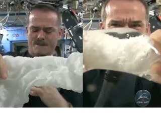 കനേഡിയൻ ബഹിരാകാശ സഞ്ചാരിയായ ക്രിസ് ഹാഡ്ഫീൽഡായാണ് വീഡിയോയിൽ പ്രത്യക്ഷപ്പെടുന്നത്. തന്റെ ബഹിരാകാശ യാത്രാമധ്യേ ആണ് അദ്ദേഹം നനഞ്ഞ തൂവാല ഉപയോഗിച്ച് രസകരമായ പരീക്ഷണം നടത്തുന്നത്. 2013ൽ അന്താരാഷ്ട്ര ബഹിരാകാശ നിലയത്തിൽ (ISS) നിന്ന് നേരിട്ട് സ്ട്രീം ചെയ്തതാണ് ഈ വീഡിയോ. ഇതിൽ ക്രിസ് നനഞ്ഞ തൂവാല ആദ്യം കാണിക്കുന്നുണ്ട്. അതിനുശേഷം അദ്ദേഹം തൂവാല നന്നായി പിഴിയുകയും ചെയ്യുന്നുണ്ട്. എന്നാൽ അതിൽ നിന്ന് വെള്ളം വരുന്നുണ്ടെങ്കിലും താഴേയ്ക്ക് വരുന്നില്ല. ബഹിരാകാശത്ത് ഗുരുത്വാകർഷണത്തിന്റെ അഭാവം മൂലം ജെൽ പോലെയാണ് വെള്ളം തൂവാലയുടെ പുറത്ത് കാണപ്പെടുന്നത്.