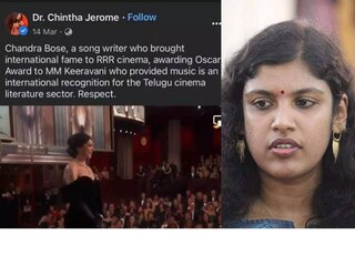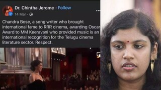 പോസ്റ്റ് ട്രോളുകളിലൂടെ വൈറലായതിന് പിന്നാലെയാണ് പോസ്റ്റ് അപ്രത്യക്ഷമായത്. ആർആര്ആർ ചിത്രത്തിലെ ‘നട്ടു നട്ടു’ ഗാനത്തിന് ഓസ്കാർ ലഭിച്ചതിന് സംഗീത സംവിധായകൻ എംഎം കീരവാണിയെയും ഗാനരചയിതാവ് ചന്ദ്രബോസിനെയും അഭിനന്ദിച്ചുകൊണ്ടായിരുന്നു ഡോ. ചിന്താ ജെറോമിന്റെ പോസ്റ്റ്.