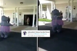 ഒരു വലിയ ഹിപ്പോയുടെ വേഷം ധരിച്ചാണ് മകൾ അമ്മയ്ക്കരികിലെത്തുന്നത്.വേഷം അണുവിമുക്തമാക്കി സുരക്ഷ ഉറപ്പു വരുത്തി തന്നെയാണ് എത്തിയത്. മുന്നിൽ ഒരു ഹിപ്പോയെ കണ്ടെ വയോധികയായ അമ്മ ഒന്നു പകച്ചു നിന്നെങ്കിലും പിന്നീട് മകളുടെ ശബ്ദം കേട്ട് അരികിലേക്ക് വന്ന് കെട്ടിപ്പിടിക്കുകയായിരുന്നു. സംഭവത്തിന്റെ ദൃശ്യങ്ങൾ സോഷ്യൽ മീഡിയയിൽ വ്യാപകമായി പ്രചരിച്ചു.