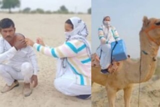 രാജസ്ഥാനിലെ ബര്മര് ജില്ലയിലെ ഒരു വിദൂര ഗ്രാമത്തിലെ ജനങ്ങള്ക്ക് വാക്സിന് നല്കുന്നതിനായി ഒരു വനിതാ ആരോഗ്യ പ്രവര്ത്തക ഒട്ടകപ്പുറത്ത് കയറി എത്തിയതിന്റെ ചിത്രങ്ങളായിരുന്നു അത്. കേന്ദ്ര സര്ക്കാരിന്റെ 'ഹര് ഘര് ദസ്തക്' കാമ്പെയ്നിന്റെ ഭാഗമായി കോവിഡ് -19 വാക്സിന് നല്കുന്നതിനായാണ് ആ ആരോഗ്യ പ്രവര്ത്തക ഥാര് മരുഭൂമിയിലെ ഒരു ഗ്രാമത്തിലേക്ക് ഒട്ടകത്തിന്റെ പുറത്ത് കയറി പോയത്.