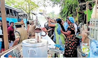 നഗരസഭാ ഓഫിസിന് മുന്നിലെ നടപ്പാത കയ്യേറി രാഖി ചായ ക്കച്ചവടം നടത്തിയിരുന്നത് ഒഴിപ്പിക്കാനെത്തിയ ഹെൽത്ത് സൂപണ്ട് സി. നിഷയുടെ നേതൃത്വത്തിലുളള സംഘത്തിന് നേരെയാണ് ശനിയാഴ്ച വൈകിട്ട് അതിക്രമമുണ്ടായത് . ഇതിനു പിന്നാലെ തിളച്ച് എണ്ണ ഒഴിക്കുമെന്ന് ഭീഷണി മുഴക്കിയെങ്കിലും പോലീസ് ഇടപെട്ടു സ്ഥിതി നിയന്ത്രണവിധേയമാക്കി.
