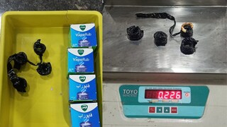 കുവൈറ്റിൽ നിന്നെത്തിയ കരിപ്പൂർ സ്വദേശി നയാൻ കാസിം ആണ് പിടിയിലായത്. 226 ഗ്രാം (28.25 പവൻ) സ്വർണമാണ് കസ്റ്റംസ് പരിശോധനയിൽ പിടികൂടിയത്. വിക്സ് ബോട്ടിലിനുളളിൽ സ്വർണകമ്പികളാക്കി ഒളിപ്പിച്ച് കടത്താനായിരുന്നു ശ്രമം.