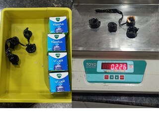 അതോടൊപ്പം തന്നെ സ്വർണം മലദ്വാരത്തിൽ ഒളിപ്പിച്ചു കടത്താൻ ശ്രമിച്ച യാത്രക്കാരനും കസ്റ്റംസിന്റെ പരിശോധനയിൽ പിടിയിലായി. മലപ്പുറം സ്വദേശി മുഹമ്മദ് ഹാരിസ് ആണ് മലദ്വാരത്തിൽ സ്വർണം ഒളിപ്പിച്ച് കടത്താൻ ശ്രമിച്ചത്. 1014 ഗ്രാം മിശ്രിത രൂപത്തിലുള്ള സ്വർണം നാല് ക്യാപ്സൂളുകളിലായാണ് ഇയാൾ മലദ്വാരത്തിൽ ഒളിപ്പിച്ചത്.
