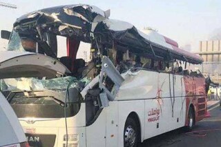 ജൂണ് ആറിന് ഒമാനില് നിന്ന് ദുബായിലേയ്ക്ക് വന്ന മൗസലാതത്് ബസാണ് വഴിതെറ്റി ഇരുമ്പു തൂണില് ഇടിച്ചത്. സംഭവത്തില് ഒമാന് സ്വദേശിയായ ബസ് ഡ്രൈവറെ പൊലീസ് കസ്റ്റഡിയിലെടുത്തു. പിന്നീട് ട്രാഫിക് കോടതിയില് ഹാജരാക്കി.
