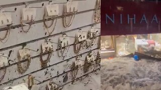 പെട്ടെന്നുണ്ടായ മഴയിൽ വേഗത്തിൽ കടയിൽ വെള്ളവും മാലിന്യവും നിറഞ്ഞതോടെ ഉടമയും ജോലിക്കാരും ജീവനും കൊണ്ടോടി. കുത്തിയൊലിച്ചെത്തിയ വെള്ളം ഷോക്കേസുകളിൽ നിരത്തിവച്ചിരുന്ന ആഭരണങ്ങളടക്കം കവർന്നു. വെള്ളത്തിന്റെ ശക്തിയിൽ ഷോറൂമിന്റെ പിറകുവശത്തെ വാതിൽ തുറന്നതോടെ മുഴുവൻ ആഭരണങ്ങളും നഷ്ടമാക്കുകയായിരുന്നു.