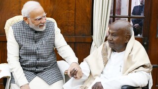 മുൻ പ്രധാനമന്ത്രി ദേവഗൗഡ പാർലമെന്റിൽ വെച്ച് പ്രധാനമന്ത്രി നരേന്ദ്ര മോദിയെ കണ്ടു