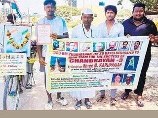 ” ഈ ദൗത്യം പൂര്ത്തിയാക്കാന് ഐഎസ്ആര്ഒ ശാസ്ത്രജ്ഞര് രാപ്പകലില്ലാതെ കഷ്ടപ്പെട്ടിട്ടുണ്ട്. അവരെ നേരിട്ട് കണ്ട് അഭിനന്ദനം അറിയിക്കണം. അവരെ സല്യൂട്ട് ചെയ്യണം,”കറുപ്പയ്യ പറഞ്ഞു.