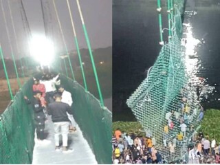 ഗുജറാത്തിന്റെ തലസ്ഥാന നഗരമായ അഹമ്മദാബാദിൽനിന്ന് 200 കിലോമീറ്റർ അകലെയുള്ള മോർബിയിലാണ് ദുരന്തമുണ്ടായത്. ഞായറാഴ്ച വൈകിട്ടോടെയായിരുന്നു അപകടം ഉണ്ടായത്. 140 വര്ഷത്തിലെറെ പഴക്കമുള്ള പാലം അറ്റകുറ്റപ്പണി പൂർത്തിയാക്കി അഞ്ച് ദിവസം മുൻപാണ് തുറന്നുകൊടുത്തത്. പാലം ആളുകളാല് തിങ്ങിനിറഞ്ഞിരുന്നു. ആളുകള് കുലുക്കിയതോടെ അത് ആടിയുലയുകയും പെട്ടെന്ന് പൊട്ടിവീഴുന്നതുമാണ് ദൃശ്യത്തിലുള്ളത്.