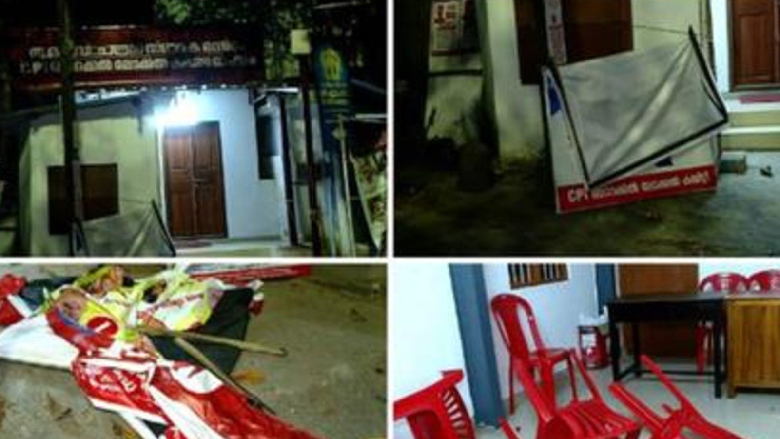 എറണാകുളം ഞാറയ്ക്കലിൽ സി പി ഐ ലോക്കൽ കമ്മിറ്റി ഓഫീസിന് നേരെയാണ് അക്രമം നടന്നത്. കൊടി മരവും ഫ്ലക്സും വലിച്ചു കീറുകയും കസേര ഉൾപ്പെടെ നശിപ്പിക്കുകയും ചെയ്തു. സി പി ഐ ലോക്കൽ സെക്രട്ടറിക്കും മണ്ഡലം സെക്രട്ടറിക്കും പരിക്കേറ്റു. സി പി എം ഞാറയ്ക്കൽ ഏരിയ സെക്രട്ടറിയുടെ നേതൃത്വത്തിൽ നടന്ന പ്രകടനത്തിനിടെയാണ് ആക്രമണം ഉണ്ടയത്. സംഭവത്തിൽ ഏരിയ സെക്രട്ടറി പ്രിനിൽ, സാബു, സൂരജ്, സുനിൽ ഹരി ഹരീന്ദ്രൻ ഷിനിൽ എന്നിവർക്കെതിരെ പൊലീസ് കേസെടുത്തു.