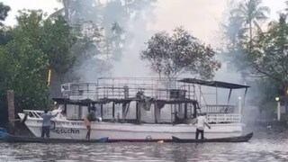 വിനോദസഞ്ചാരത്തിനായി ഉപയോഗിക്കുന്ന ബോട്ടിന് തീപിടിച്ചു; പൂർണമായും കത്തിനശിച്ചു