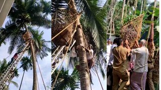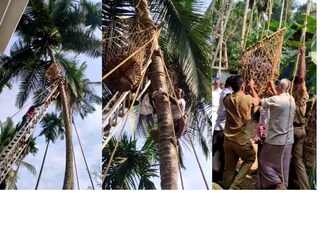 തുടർന്ന് വീരാൻ കുട്ടിയെ മറ്റൊരു തെങ്ങു കയറ്റ തൊഴിലാളിയായ വിനോദ് തെങ്ങിൽ കയറി കയറുകൊണ്ട് കെട്ടി നിർത്തി. പിന്നാലെ മുക്കം ഫയർഫോഴ്സിനെ വിവരമറിയിച്ചു. മുക്കം ഫയർഫോഴ്സ് സ്ഥലത്ത് എത്തി ലാഡറിന്റെ സഹായത്തോടുകൂടി തെങ്ങിൽ കയറി നെറ്റ് ഉപയോഗിച്ച് വീരാൻകുട്ടിയെ താഴെ ഇറക്കുകയായിരുന്നു. തെങ്ങിൽ നിന്നും ഇറക്കിയ വീരാൻകുട്ടിയെ തൊട്ടടുത്തുള്ള ആശുപത്രിയിൽ എത്തിച്ച് പ്രഥമ ശുശ്രൂഷ നൽകി.