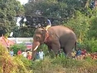 തൃശ്ശൂരിൽ ഇടഞ്ഞ ആന ലോറി മറിച്ചിടാൻ ശ്രമിച്ചു; ശ്രീകൃഷ്ണപുരം വിജയന്റെ കൊമ്പൊടിഞ്ഞു