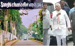'സംഘി ചാൻസലർ വാപ്പസ് ജാവോ' എന്ന ബാനറാണ് എസ്എഫ്ഐ ക്യാംപസില് ഉയർത്തിയിരുന്നത്.