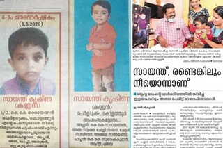 ജൂണ് ഏഴിന് ഒരു മകന്റെ വേര്പാടിന്റെയും മറ്റൊരു മകന്റെ പിറന്നാളിന്റെയും ചിത്രങ്ങള് അടുത്തടുത്താണ് മാതാപിതാക്കള് ദേശാഭിമാനിയില് പ്രസിദ്ധീകരിച്ചത്. പരസ്യം കണ്ടവര് ഒറ്റനോട്ടത്തില് അമ്പരന്നുവെങ്കിലും ഇവരെ അറിയാവുന്നവര് കുഞ്ഞു സായന്തിനെ വിളിച്ച് പിറന്നാള് ആശംസകള് നേര്ന്നു. ദേശാഭിമാനി കണ്ണൂർ എഡിഷനിൽ വന്ന ഈ പരസ്യത്തില് നിന്നാണ് മനോരമ ഇന്ന് രണ്ട് സായന്ത് കൃഷ്ണമാരുടേയും കഥ കണ്ടെത്തുന്നതും പ്രസിദ്ധീകരിച്ചതും.