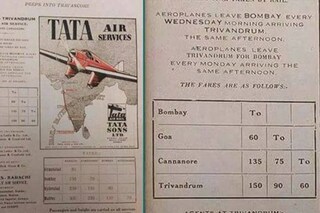 83 വര്ഷങ്ങള്ക്ക് മുമ്പ് ടാറ്റ എയര് സര്വീസസ് നല്കിയ പരസ്യമാണ് പി.കെ ശ്രീമതിയുടെ പക്കലുള്ളത്. ടാറ്റ എയര് സര്വീസസിന്റെ മുംബൈ തിരുവനന്തപുരം വിമാനത്തിനാണ് ഗോവയ്ക്കു പുറമെ കണ്ണൂരിലും സ്റ്റോപ്പുണ്ടായിരുന്നത്. മുംബൈയില് നിന്നും കണ്ണൂരിലേക്കു 135 രൂപയും ഗോവയില് നിന്ന് 75 രൂപയുമായിരുന്നു അന്നത്തെ ടിക്കറ്റ് നിരക്ക്.