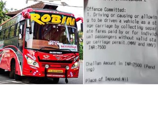 റോബിന് ബസ് അന്തർസംസ്ഥാന സര്വീസ് തുടങ്ങിയതിന് പിന്നാലെ പെർമിറ്റ് ലംഘനത്തിന് എംവിഡിയുടെ 7500 രൂപ പിഴ