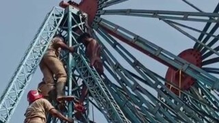 ആകാശത്തൊട്ടിൽ അഴിക്കാൻ കയറിയ ഷംസു ഇന്ന് ഉച്ചയ്ക്ക് ഒന്നരയോടെയാണ് യന്ത്രഭാഗത്തിനുള്ളിൽ കുടുങ്ങിയത്. അറുപത്തിയഞ്ച് അടി ഉയരത്തിൽ ജോയിന്റ് വീലിനിടയിൽ ഇയാൾ കുടുങ്ങിയത്. കാലുകൾ വീലിനിടയിൽ കുടുങ്ങിപ്പോകുകയായിരുന്നു.