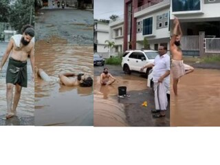 സംഭവത്തിന്റെ ചിത്രങ്ങളും വീഡിയോയും സമൂഹമാധ്യമങ്ങളില് വൈറലായിരിക്കുകയാണ്. വെള്ളക്കെട്ടിൽ കുളിക്കുകയും ഒറ്റക്കാലിൽ തപസ്സു ചെയ്തുമായിരുന്നു പ്രതിഷേധം. ഈ സമയം അവിചാരിതമായി സ്ഥലം എംഎല്എ യു എ ലത്തീഫും സ്ഥലത്ത് എത്തി.ചെളിവെള്ളം നിറഞ്ഞ കുഴിക്കു മുന്നിൽ ഒരാൾ തപസ്സു ചെയ്തു. എംഎൽഎയുടെ വാഹനത്തിനു മുന്നിലായിരുന്നു പ്രതിഷേധം.