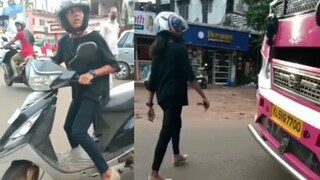ബസ് ഓവർ ടേക്ക് ചെയ്യുന്നതിനിടെ ഇരു ചക്രവാഹനത്തിലുണ്ടായിരുന്ന സാന്ദ്ര തലനാരിഴയ്ക്കാണ് രക്ഷപ്പെട്ടത്. ഒന്നരകിലോമീറ്ററോളം പിന്തുടർന്നാണ് യുവതി ബസിനെ തടഞ്ഞുനിർത്തിയത്.