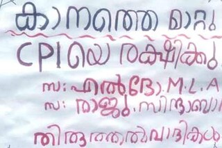 സി.സി ടി.വി ദൃശ്യങ്ങള് പരിശോധിച്ചാണ് പോസ്റ്റര് ഒട്ടിച്ചവരെ കണ്ടെത്തിയത്. വെള്ളിയാഴ്ച രാവിലെയാണ് പോസ്റ്റര് പ്രത്യക്ഷപ്പെട്ടത്. 'കാനത്തെ മാറ്റൂ, സി.പി.ഐയെ രക്ഷിക്കൂ' എന്നെഴുതിയ പോസ്റ്ററുകള് 'സി.പി.ഐ തിരുത്തല് വാദികള് അമ്പലപ്പുഴ' എന്ന പേരിലാണ് പാര്ട്ടി ജില്ലാ കമ്മിറ്റി ഓഫീസിന്റെ ചുവരില് ഉള്പ്പെടെ പതിച്ചത്. പോസ്റ്ററില് എല്ദോ എബ്രഹാം എം.എല്.എക്കും സി.പി.ഐ എറണാകുളം ജില്ല സെക്രട്ടറി പി. രാജുവിനും സിന്ദാബാദും രേഖപ്പെടുത്തിയിട്ടുണ്ട്. ജില്ലാ കമ്മിറ്റി ഓഫീസിനു പുറമെ ചടയന്മുറി ഹാള്, കയര് കോര്പറേഷന് എന്നിവിടങ്ങളിലും പോസ്റ്റര് പതിച്ചിരുന്നു.