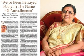 ശബരിമല യുവതീ പ്രവേശനത്തെ എതിർത്തു കൊണ്ട് തന്നെയായിരുന്നു വനിതാ മതിലിൽ പങ്കെടുത്തത്. ശബരിമലയെക്കുറിച്ചോ, യുവതിപ്രവേശത്തെ കുറിച്ചോ ഒരു വാക്കെങ്കിലും ഉണ്ടായിരുന്നെങ്കില് അതിൽ പങ്കെടുക്കാതെ മടങ്ങുമായിരുന്നു. ഈ പരിപാടി നടന്നതിന് അടുത്ത ദിവസമാണ് രണ്ട് യുവതികൾ സന്നിധാനത്തെത്തിയത്. ഇത്തരത്തിൽ രഹസ്യമായി തലയിൽ തുണിയിട്ട് സ്ത്രീകളെ ഒളിച്ചു കടത്തി നവോത്ഥാനം സാധ്യമാകില്ല. ആ നടപടി നിരവധി പേരെയാണ് ബാധിച്ചത്.