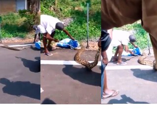 നാഗാലാൻഡിൽ നിന്ന് ലോറിയിൽ കയറിക്കൂടിയ പെരുമ്പാമ്പ് പട്ടിത്താനത്ത് നടുറോഡിലിറങ്ങി