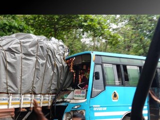 Summary- More than 20 bus passengers were injured in a collision between a bus and a lorry at Kundamangalam Choolam vayal in Kozhikode. The incident happened at 7.30 am today. The Fatimas bus, which was going to Kozhikode from Thamarassery, collided with an oncoming lorry. More than 20 people, including a woman police officer, were injured in the accident. No one was seriously injured.