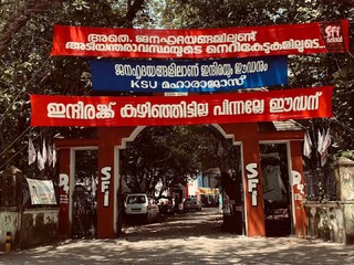 'ദൂരദൂരമുയരട്ടെ' മഹാരാജാസ് കോളേജ് കവാടത്തില് SFI-KSU ബാനര് പോര് മുറുകുന്നു