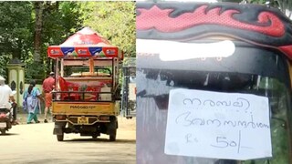 ഗിരീഷ് എന്ന ഓട്ടോ ഡ്രൈവറാണ് തന്റെ വാഹനത്തിന് മുന്നിൽ സ്റ്റിക്കർ പതിച്ചത്. ഇന്ന് ഞായറാഴ്ച്ചയായതിനാൽ എത്തുന്ന സന്ദർശകരുടെ എണ്ണവും കൂടി. ഇന്ന് മാത്രം തനിക്ക് 1200 രൂപയുടെ ഓട്ടം കിട്ടിയെന്നാണ് ഗിരീഷ് പറയുന്നത്.