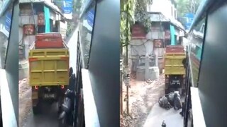 ബസിനെ ഓവർടേക്ക് ചെയ്യാൻ ശ്രമിക്കുന്നതിനിടെ ബൈക്കിൽ ലോറിയിടിച്ചു; വിദ്യാർഥിനികൾ അത്ഭുതകരമായി രക്ഷപ്പെട്ടു