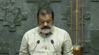 Summary: Suresh Gopi takes oath in his mother tongue Malayalam. He moved towards the podium chanting the mantra 'Krishna... Guruvayoorappa'. Suresh Gopi sports a unique salt and pepper beard, a look he has developed for a character in an upcoming film