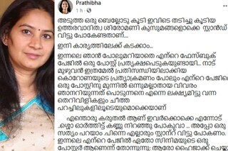 പ്രതിഭയുടെ അക്കൗണ്ടിൽ ഇന്നലെ പ്രത്യക്ഷപ്പെട്ട വിവാദ പോസ്റ്റ്