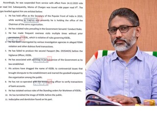 - സർക്കാർ ജീവനക്കാരുടെ പെരുമാറ്റ ചട്ടം ലംഘിച്ചു.
