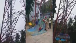 ഭർത്താവിനോടൊപ്പമുള്ള കുഞ്ഞിനെ തിരികെ കിട്ടാത്തതിനാൽ ആത്മഹത്യ ചെയ്യുമെന്ന് യുവതി ഭീഷണി മുഴക്കിയതോടെ ജീവനക്കാർ പോലീസിനെയും അഗ്നിരക്ഷാസേനയെയും വിവരം അറിയിക്കുകയായിരുന്നു. യുവതിയെ പിന്തിരിപ്പിക്കാന് പലതവണ ശ്രമിച്ചെങ്കിലും വഴങ്ങാതെ വന്നതോടെ അഗ്നിരക്ഷാസേനാംഗങ്ങൾ ടവറിനു ചുറ്റും വലവിരിച്ചു മുൻകരുതലെടുത്തു. പോലീസ് ഉദ്യോഗസ്ഥർ അനുനയിപ്പിക്കാനുള്ള ശ്രമം തുടരുന്നതിനിടെ യുവതിയുടെ കൈവശമുണ്ടായിരുന്ന പെട്രോൾ നിറച്ച കുപ്പി താഴെ വീണു. ഇതോടെ ടവറിന്റെ കൂടുതൽ ഉയരത്തിലേക്കു യുവതി കയറാൻ തുടങ്ങി.