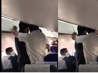 കണ്ണൂരിൽ നിന്ന് പുറപ്പെട്ട വിമാനം തിരുവനനന്തപുരത്ത് ലാൻഡ് ചെയ്യുന്നതിനിടയിലായിരുന്നു പ്രതിഷേധം. 'പ്രതിഷേധം .. പ്രതിഷേധം' എന്ന് വിളിച്ച് എഴുന്നേറ്റ യുവാക്കളെ എൽഡിഎഫ് കണ്വീനര് ഇപി ജയരാജൻ പ്രതിരോധിക്കുകയായിരുന്നു.